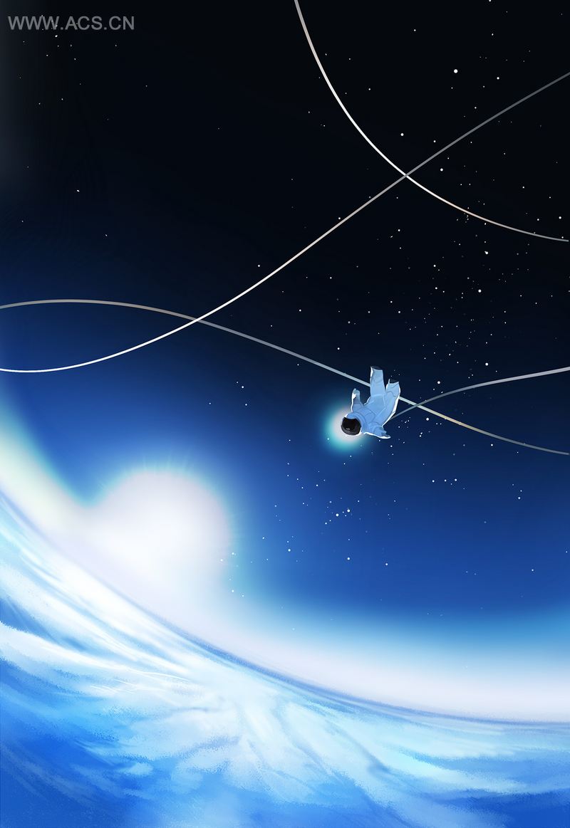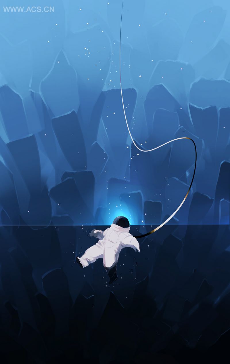 一组关于宇航员的插画,创作者用鲜明的颜色创造新奇各异的空间,带你遨游。