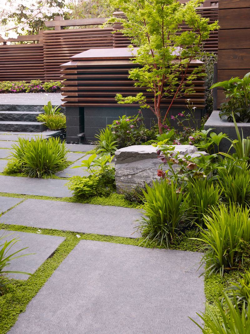 花园明显可划分为两部分——种植空间和用餐空间。植物有多个品种,值得一提的是部分植物有着鲜明的季节色彩。用餐区是一个简单的石头平台,高于种植空间。设计师在整个花园里精心布置了几块岩石,以便和石头铺就的通道形成微妙的联系。