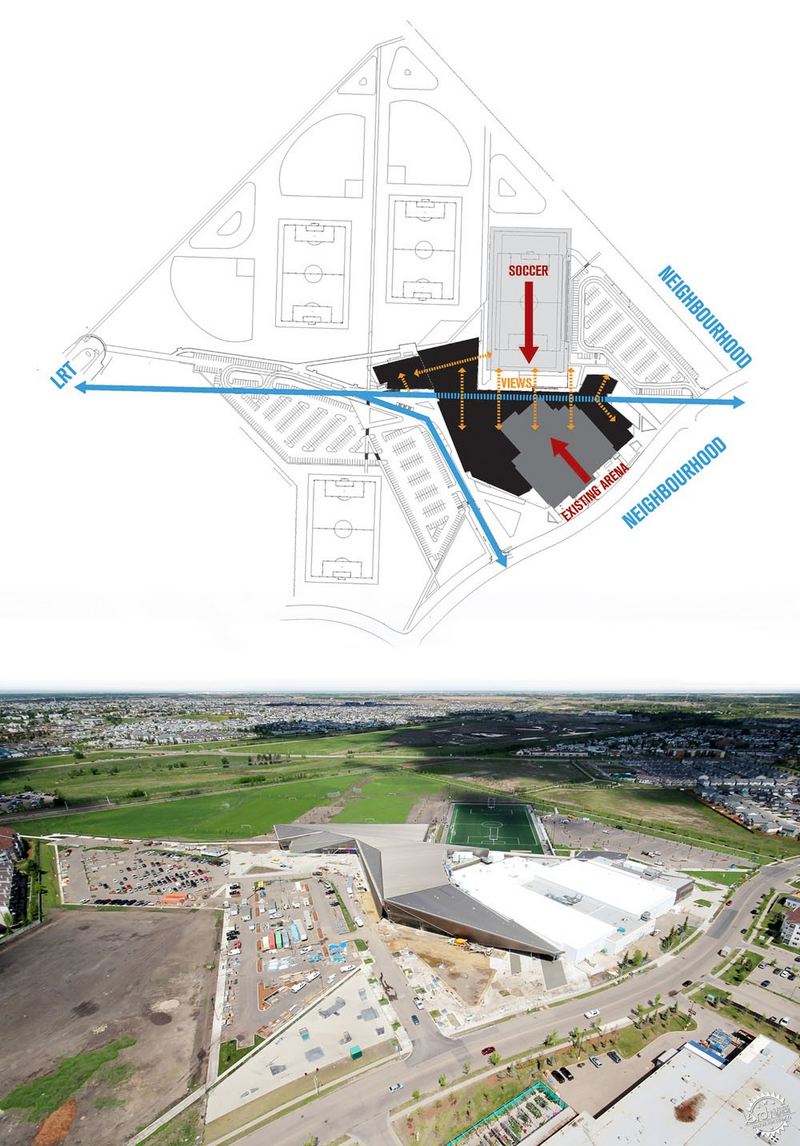 这个庞大而复杂的项目是埃德蒙顿市维尤区新总体规划的关键项目之一,旨在促进社区内部的安全互交和连通性,同时加入先进的扩建图书馆、娱乐和社区服务。