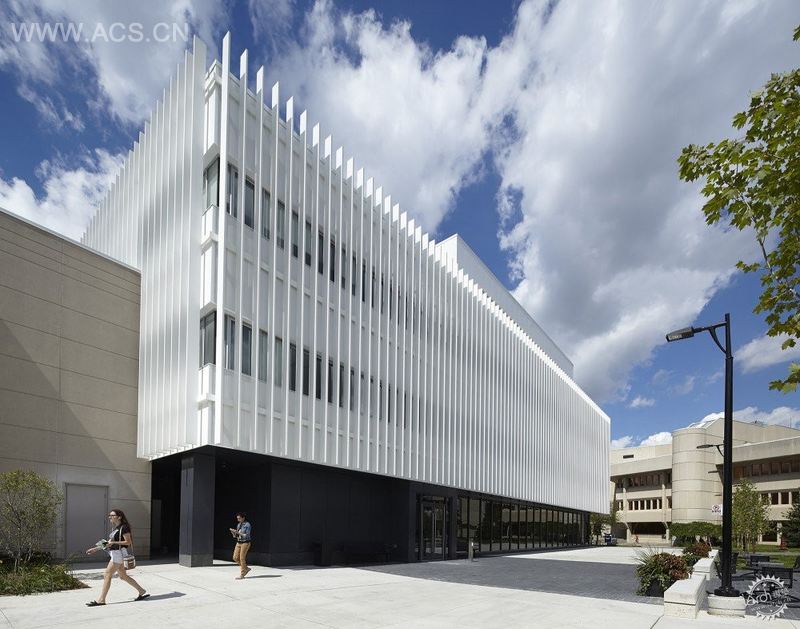 校园最新扩建部分是多伦多大学密西沙加校区创新中心,是对PCL Constructors 和Moriyama & Teshima设计的Kaneff 中心的改扩建。设计和施工团队将建于1992年的后现代建筑的圆形庭院围起来,从整体上应对多样性环境,尊重了原始设计的独特性,同时将庭院改造成室内圆形大厅,用矩形来平衡平面。