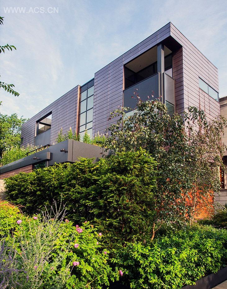 芝加哥的座右铭是“花园里的城市。”恰如其分地,客户想要一个花园里的城市别墅。这种把城市与绿化的并置促发了关于对比的更深入的研究:公共的与私密的,内部的与外部的,正式的与非正式的,修饰的与原生的。结果是一个由铜,IPE,和与葱郁的景观相交织的混凝土所组成的家。通过把完全不同的空间和材料元素并置,既能加强每种元素的内在特点,又能相互和谐地组合在一起。