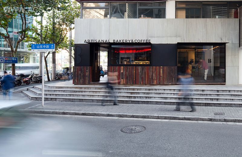 Baker One面包坊位于上海市中心,毗邻人山人海的南京购物道,周边的繁忙交通、人群和令人眼花缭乱的标牌,让原来的多彩店面未能突围 而出。为了朔造新的面孔,我们把这角落设计成一个木舞台。