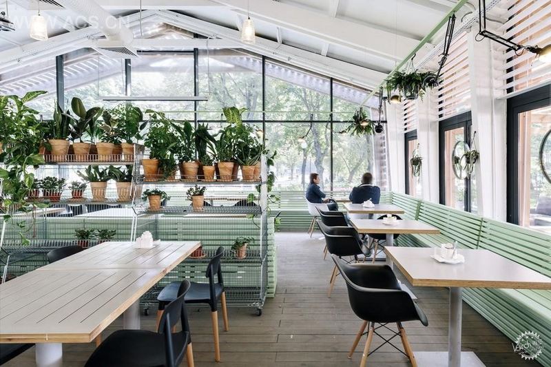 克罗斯比工作室的建筑师设计的Bulka咖啡厅位于莫斯科高尔基公园,这个公园地处莫斯科河沿岸广阔的绿地之中。因此,公园的绿化主题是通过各种细节,让莫斯科罕有的阳光明媚的夏天驱赶阴霾短暂的白天和漫长的冬夜的室内设计。