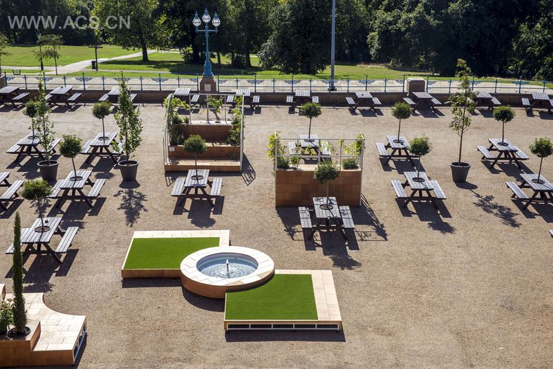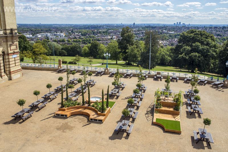Decorators,一个致力于伦敦空间的跨学科执业小组,最近把亚历山大宫的露台上零散分布的小块集合起来形成一个可移动的、整体意大利花园。按照设计者的描述来说,该项目“多洞穴,是一个公园,也是一处景观,是一处舞台,也是一座圆形露天竞技场”。同时项目在建设中也妥善地处理好了与周围环境相协调的关系,展示了自己的独到特点。方案最终“打破了参观者和宫殿初次相遇时主要建筑物的大体量,取而代之的是一种更为亲切的尺度”。