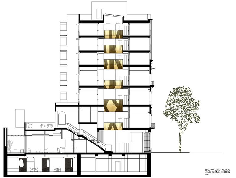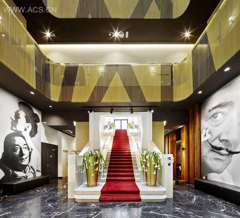 Vincci Gala酒店,坐落在西班牙巴塞罗那一栋老建筑建筑内。这座4星级酒店总共有78间房,以及酒吧、餐厅、会议室和各种露台。这座新的Vincci Gala酒店主要有两个方面的设计要求。首先,巴塞罗那纪念碑保护部门要求保存建筑立面和在建筑内部的白色大理石楼梯。其次,酒店的名字“gala”指的是超现实主义画家萨尔瓦多•达利的妻子。