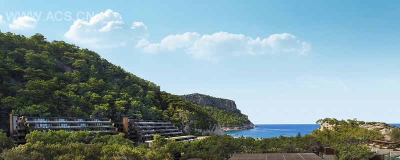 酒店建立在陡峭的山坡上,被茂密的森林、两条海湾和一个非常长的海滩所包围。它由东到西可根据树木,独特的植物,山坡,1987年在此区域建造的Kiriş世界酒店的残留建筑以及海湾和小海滩等等自然或人工要素分成具有不同特征的景观特色分区。