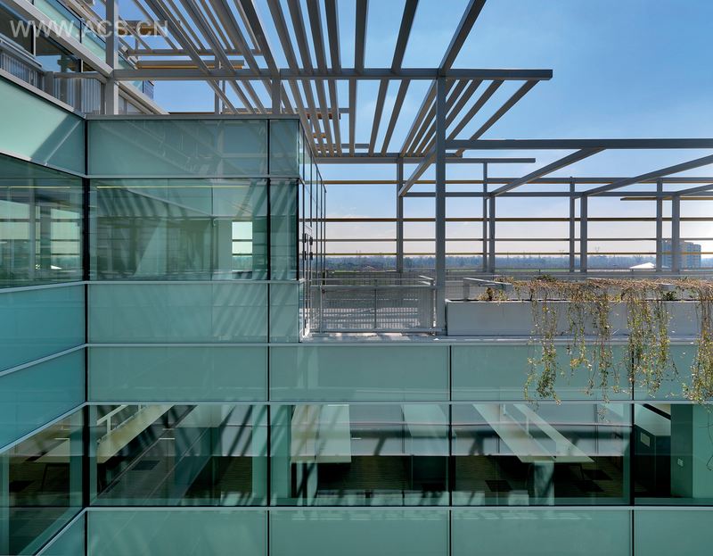 这个平台和建筑的走向能够保证最优环境控制。北部、东部和西部建筑立面有着设计独特的玻璃遮阳系统。建筑南面的地势形成了一系列阶台,能够为员工们提供阴凉的户外空间。这些阶台充当着环境的缓冲空间,保护着建筑免受夏季和冬季极端天气的侵害。