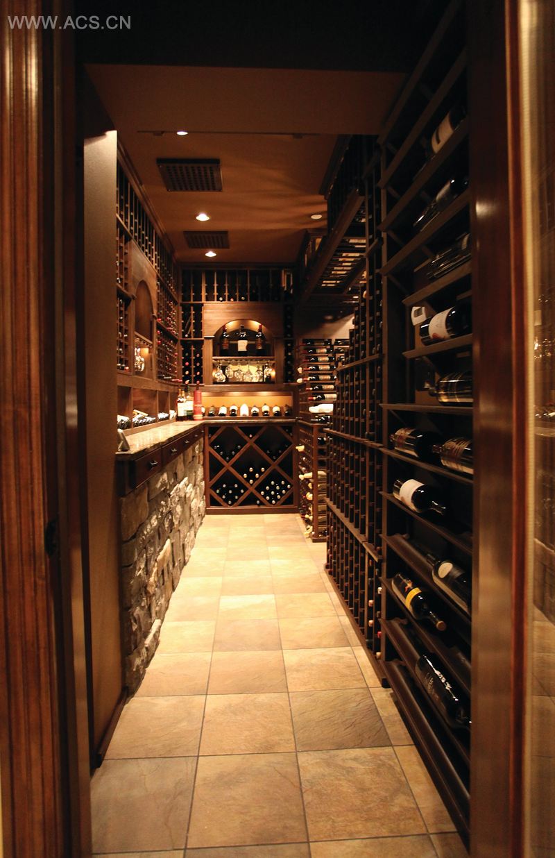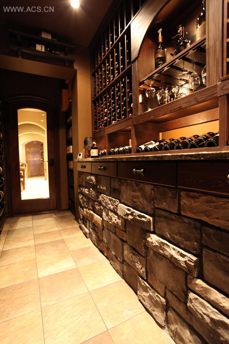 有些酒窖项目提出的挑战,就连久经沙场的建筑师们都有些望而却步。该酒窖是由主人家狭小空间中挖出的重达七吨的石头精心制作而成,其中一个石头就有一辆大众甲壳虫汽车那么大。经过一番耗时的挖掘,满屋子的沙尘让主人们无家可归了一个多月,真正的酒窖建造才终于开始动工。 挑战还将继续,因为该项目是主人长久以来的梦想,他想要将许多设计元素拼凑,铸成他梦想中的酒窖。 最后,这座华丽、有定制着色的实心红木、花岗岩以及具有1800瓶容量的石制酒窖诞生了。酒窖中还有一个能储存30个大号酒瓶的房间,红酒都陈列在多余顶冠饰条材料定制的手工架子上。酒瓶桥的材料则是来自于世纪之交时红木水库中的木板。