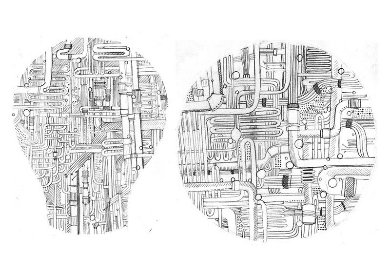 More detailed sketches taking forward the approach of inner structures using an overall counter form.