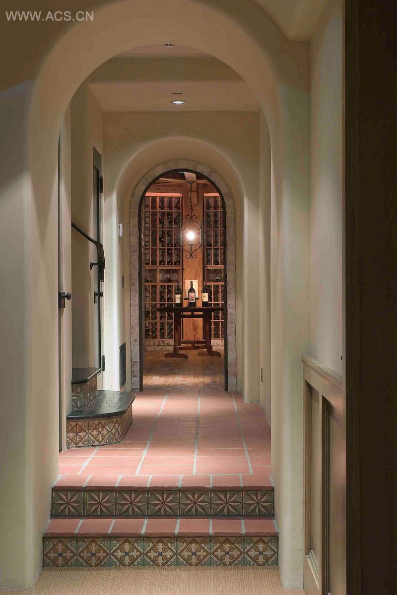 这座历久弥新的6,000英尺的乡间别墅座落于加利福尼亚奥兰治县富裕的绿茵谷旁,燃起了人们成为20世纪20年代时住在大庄园里的乡绅的幻想。雅致的房子两侧伴着庭院和有屋顶的走廊,为休闲娱乐提供了优雅的环境。房子内部是用陶瓦平铺的小道,将宾客们引入行家们的酒窖,可谓真正意义上的墨西哥本地“大庄园主”。土砖墙营造出陈旧的呈风化状的外观,与橡木板制成的屋顶以及地板相映衬,营造出了高雅静谧的空间。