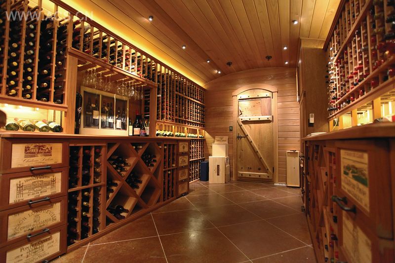 最后,我们还是选用了带有清漆罩面的实心红木。然而最让客户惊讶的是我们竟然采用了从国家公园的红木水箱回收来的红木制作了所有的家具 。他们对2 500瓶的容量也感到非常满意。定制波尔多抽屉和重点照明使得该项目非常独特。