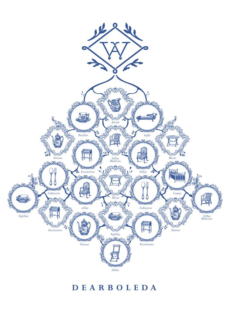 La tienda es manejada por las tres mujeres de la familia Arboleda y por esa razón el dise?o se basa en los árboles genealógicos, solo que en vez de las personas de la familia Arboleda, están los muebles de su tienda. El logo tipo es la letra A de Arboleda y está formada por una W que viene de la familia Wartenberg que es el apellido materno.