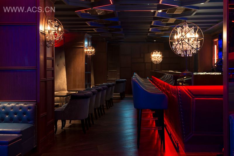 设计语言源于对于Boujis品牌个性以及客户的期望和需求的理解,精炼、典雅,注重细节,更重要的是,内在的英伦风情。最终的结果混合了传统英式设计,从殖民地遗产中吸取灵感,展示了当代的方式;温暖的木材、黄铜配件和奢华的家具。顶尖的声光电系统结合到木质墙板和天花板中,乔治王时代艺术风格的天花板内部装有LED霓虹灯,散发出光晕,特色饮料柜巧妙地反射出金色烟色玻璃上的英国国旗。