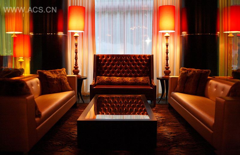 “Vanquish会所有着豪华酒店大堂的贵族氛围,由当地平面艺术家创作的大型壁画描绘了视觉上的驳论——一只凶猛的老虎在一个迷人的女士身旁。强调了这一品牌的奢华的是其LOGO,重复了路易威登的图案,背光式照射在富有光泽的白色石膏表层上。为了达到“古奇专卖店的感觉”,设计师使用了丰富的材料,例如深色鸡翅木立柱、豪华的黄色大理石、安放在铬合金鼓内的引人注目的黑色吊灯。”Atlantan说。