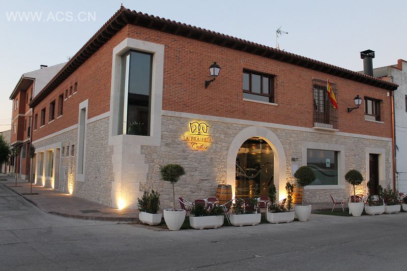 Brasería de Cuellar酒窖位于塞戈维亚省,靠近重要的斗罗河红酒地区,它于2012年成立了一家高级餐厅。该餐厅以卡斯提尔菜为主,烤肉专门选用家养的牛肉和羊肉,还有其他一些菜系。Dragon Cellars 负责人Alberto Guijarro 与室内设计师Cynthia Roman合作,量身设计一个可储藏红葡萄酒和白葡萄酒的酒窖,它集现代与淳朴为一体,LED RGB灯和米黄色调共同营造出温暖的感觉。
