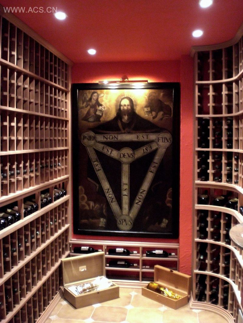 公司的总经理Al Fuentes与美国著名专家凯萨琳·瓦伦蒂尼合作完成了这座壮观的酒窖。凯瑟琳已经在加州、内达华州、亚利桑那州以及德克萨斯州等地从事与住宅和商业建筑相关的设计工作长达十三年。客户提出了几个2D、3D的设计方案。该酒窖采用的宗教画,历史可以追溯到17世纪。选定的酒窖方案建成后可容纳890瓶酒。设计师们最后完成了这座独特而引人瞩目、而且能完全满足名贵香槟的各种储存条件的酒窖。