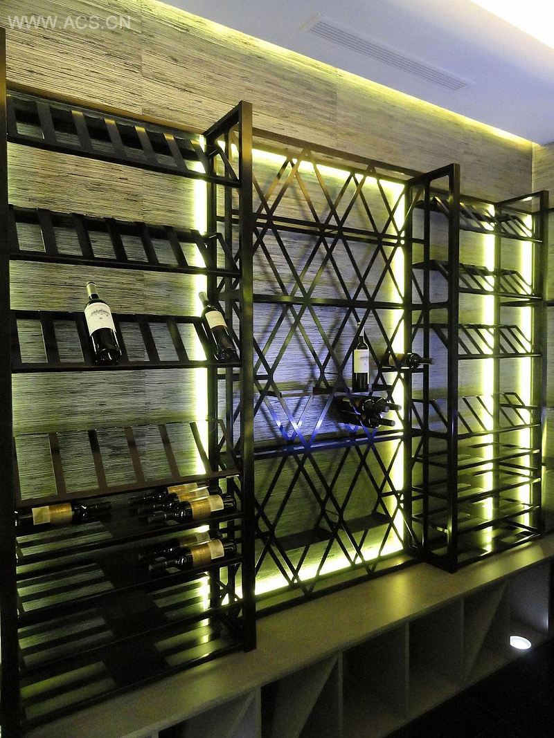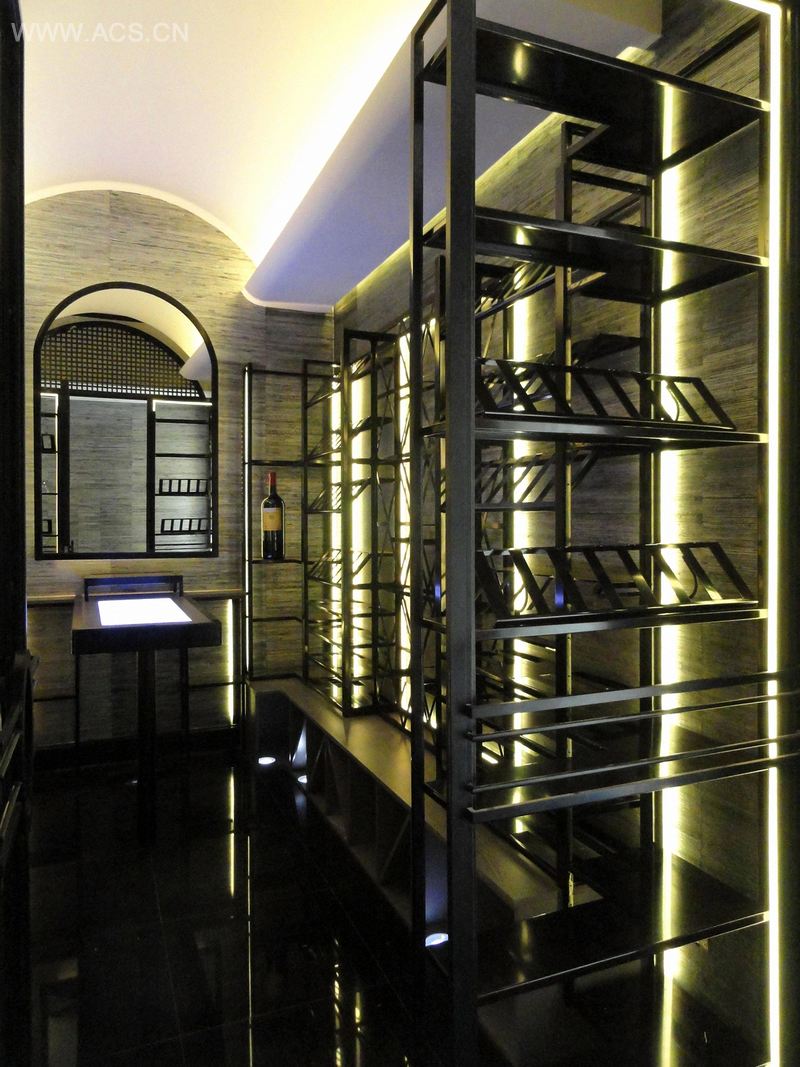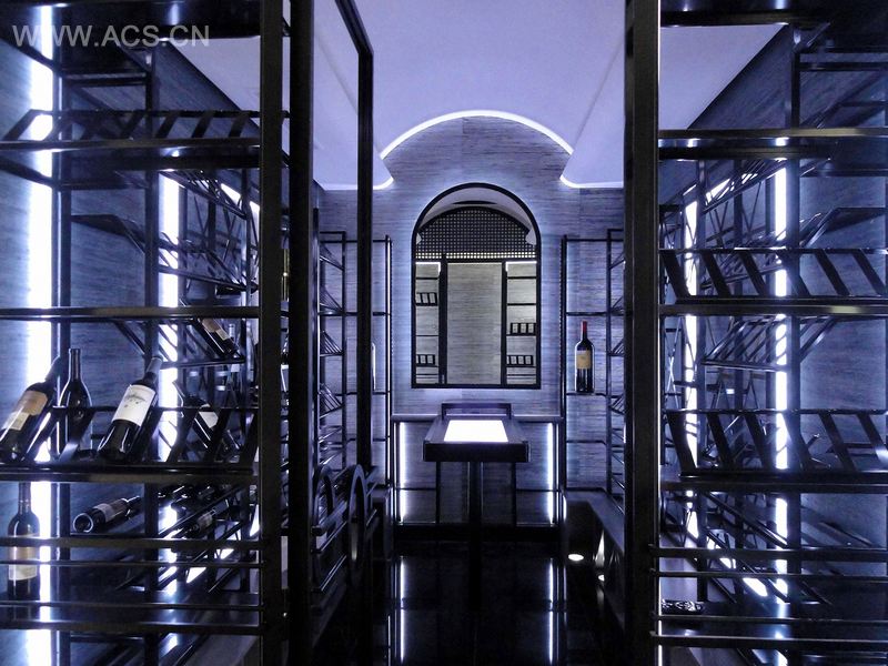 该客户的豪宅位于La Finca,是马德里最好的社区之一。该住宅是由著名建筑师杰奎因·托雷斯设计,室内装潢部分则是由享誉盛名的设计师托马斯·乌尔基霍全权负责。Al Fuentes很清楚酒窖设计就是要匠心独运。红酒的存放和展示方式设计的简洁轻巧又现代,因而十分出色。酒窖里还设有黑色金属喷漆的架子,可以用来存放和展示红酒,并且以一种独特的方式对应着托马斯精心挑选的银黑色墙纸。木底橱柜可以用来支撑金属支架,架子的材料选用的是橡木,上面还挂有各种LED灯,能容纳大号酒瓶和板条箱。酒架垂直侧面的RGB LED灯条为酒窖营造了独特的氛围,因此酒窖中心的品酒台显得格外明亮。背光镜带来的终极体验,为主人和客户创造了一种独特的经历。