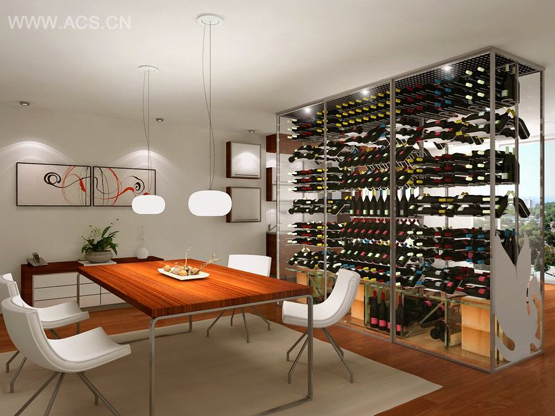 龙酒窖的总经理Al Fuentes 对设计一个新颖的酒窖颇感兴趣。酒架要用玻璃,丙烯和不锈钢制作。要将此想法实现的最好方法就是采用3D渲染,而这已由大卫·马丁的D2D3D完成了。该酒窖的设计被称为“迈阿密”,它主要的设计重心是:用一种轻巧优雅的方式将住宅或餐厅的划分出两个区域。