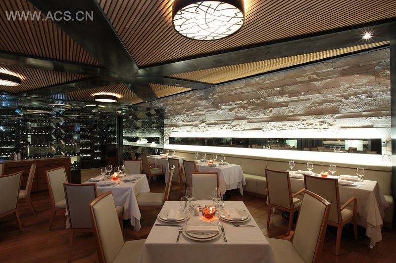 今天我们推荐的是古里亚·波朗科餐厅。它位于一座新颖别致的办公楼的访客层,这比他们在圣达菲的餐厅要隐秘的多。酒窖由黑铁制成,装有嵌灯,还附带舒适的接待区,并且环绕着大厅。穿过大厅,我们来到了主厅,东面的大窗户照亮了整个房间,光线通过镜面灯反射到石墙上,使客人们能够尽情地享受这空间。酒窖里的家具,都要以永恒和优雅为主题来设计,椅子上的骨色皮革让人在视觉上更能保持冷静。