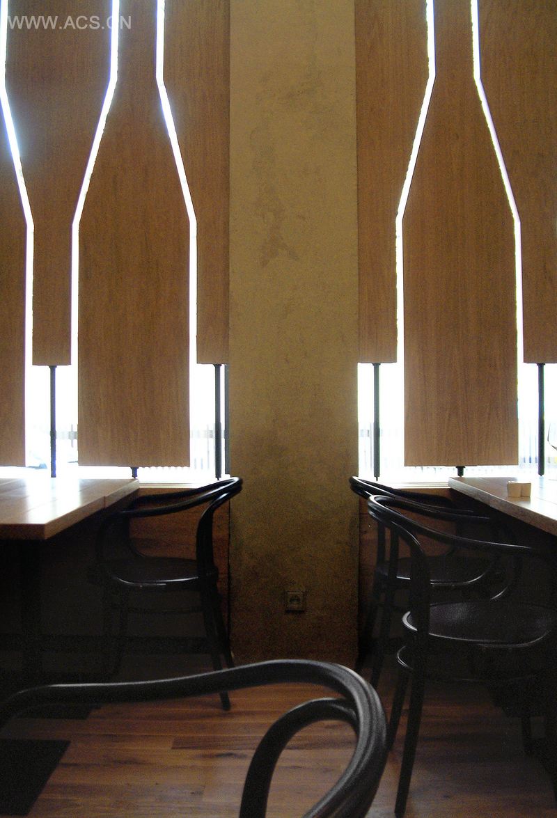 接触到这些、感受到它们的质感,这真是一种独特的体验。而这一切都被一幅出自Martina Chloupa之手、名为威尼斯的画作衬托地恰到好处。餐厅内现有的橱窗连通着室外,这对地处市中心的餐厅来说是非常重要的。我们还为夜晚品酒或私人聚会设计了旋转屏幕。人们来到这儿,可对这种将红酒存放在纸箱内的方案有着自己的理解。访客置身于酒窖时,仿佛与世隔绝。