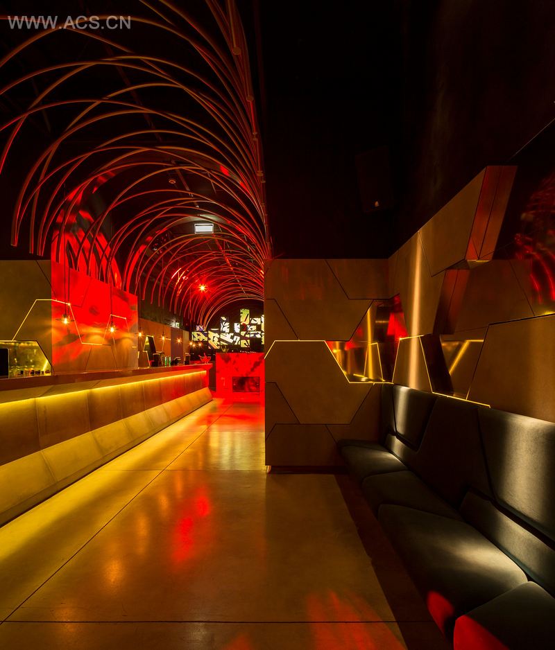 结构决定了会所的名字——Instalação(装置)。空间被混凝土墙面包围着,其上黄铜的表层与这里工业的环境形成对比。