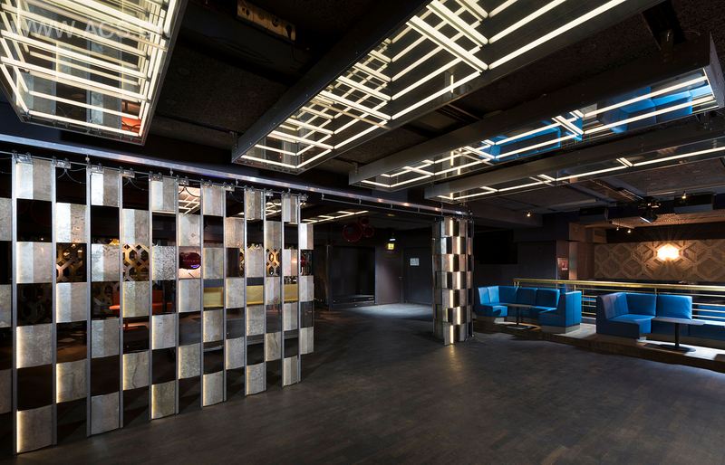可移动的金属屏风上同样应用了最新的LED技术,可以调节舞池的尺寸。