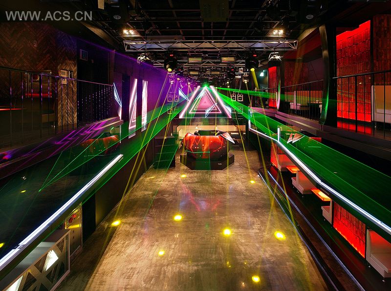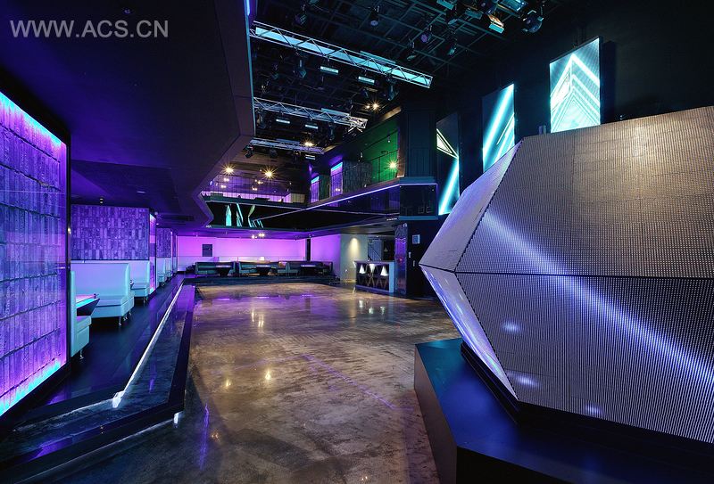 DJ台被特别设计,是会所中最形象化的结构之一。锥形台由众多三角形组成,特别定制的LED系统放射出形象化的色彩。DJ台组件完全是可移动的,可以满足会所内各种活动的空间需求。