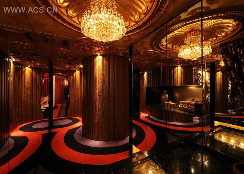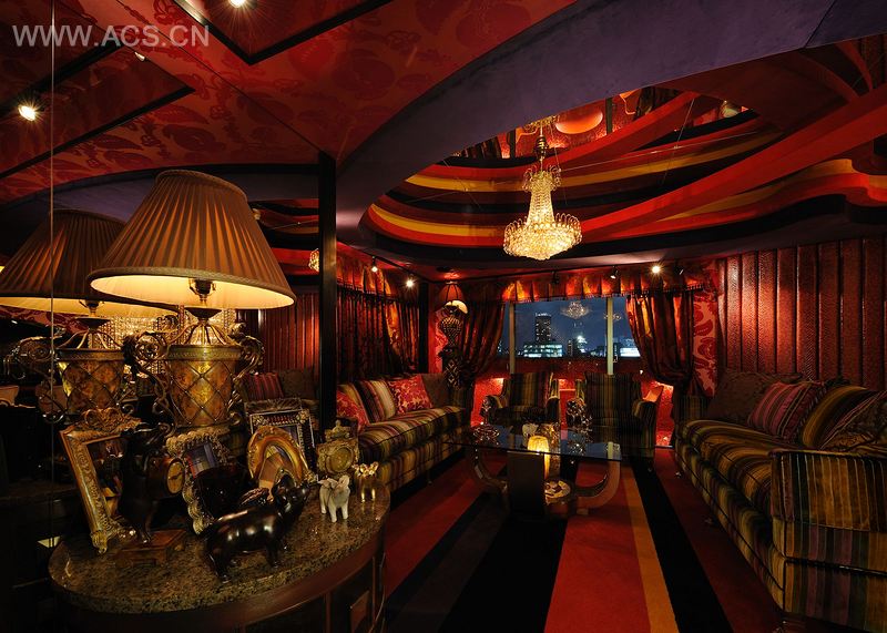 这个私人空间摒弃了“住宅”的概念,是一个充满画廊感觉的装饰空间,强调了各种形态组合成的整体,而不突出其单个形态。家具、吊灯发出的灯光和墙纸协调的色彩被用作补全其各自形态的元素,取得共同的平衡。