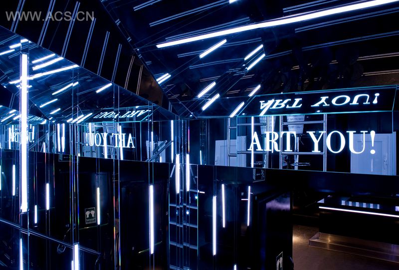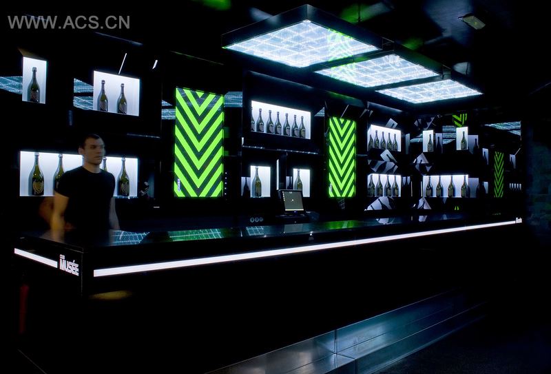 由设计师和知名艺术家例如Paco Peregrín、Robert Bartholot和Glenn Hillario创作的摄影、视频装置和插画作品展出在会所中,使其成为一种完整的文化体验。舞池中,浮动的DJ台由一个3米宽的Acqualed管装置组成,天花板上有着几何形状的吊灯。