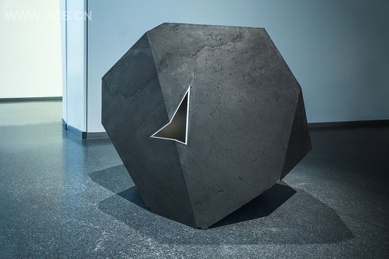 这块看上去像石头的物件是艺术家Tom Price最近完成的一个几何研究项目Carbon Void Aluminium。Carbon Void Aluminium是由两个相交的立方体构成,内层是一个空心的铝立方体,人们可以透过边缘的孔隙看见复杂的中空内部,受光照的影响,内部光影变化十分丰富。而外层,则是外表皮恰好和铝立方体保持一致的压缩煤炭。外观的多面层仿佛被利刃切开似得,铝几何体的表面光滑,造型锐利,闪耀着银光,与黑亮的煤炭形成了对比。两个表层的融为一体却又似乎截然不同,这种备具想象力的个性让人感触极深。Tom Price不光大胆对材料进行探索和运用,也思考人,建筑,还有几何空间的关系。