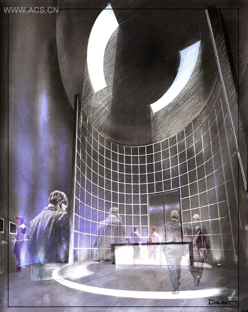 大楼共有三层,主入口位于第一层。从入口大厅乘坐玻璃电梯或者走上漂亮的玻璃楼梯都能直接去往第二层。建筑完全采用了混凝土材料,入口处有一个圆柱形建筑,直径11米,高11米,并与位于上方的楼梯形成了鲜明对比。到达大楼顶层后,访客们就会发现自己置身于一个灯光柔和的环境中,仿佛进入了多个空间之中。大楼内有全球第一个独特的商店——“I-WAY商店”,这个商店采用了碳化纤维、可丽耐材料和混凝土。