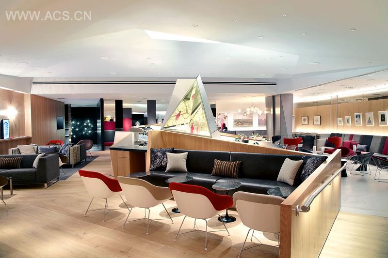 这间贵宾休息室融合了纽约市中心的感觉和维珍大西洋航空的温暖和个性。休息室散发着曼哈顿下城区SOHO精品店、特里贝克地区的寓所以及肉类包装区的时尚生活气息。