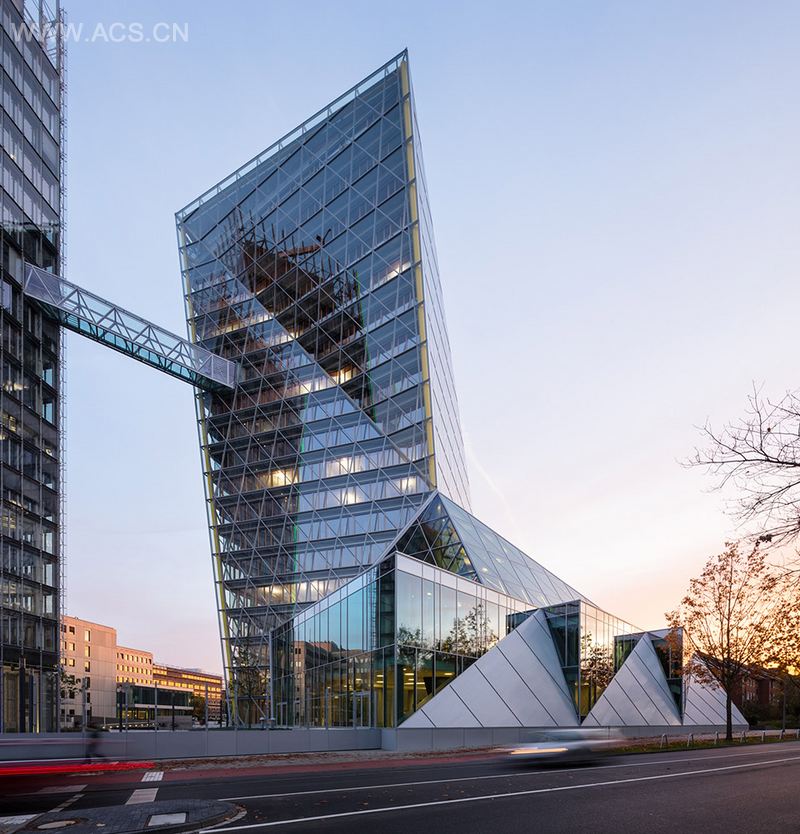 HPP建筑事务所自30年前就开始为明斯特州立保险公司LVM总部园区设计办公建筑。近日,在与韩国建筑师梁德奎(Ryang Duk Kyu -HPP前合伙人)的通力合作下,又一杰出的作品正式出炉, 并由于其异于平常的造型, 被称为“水晶”。