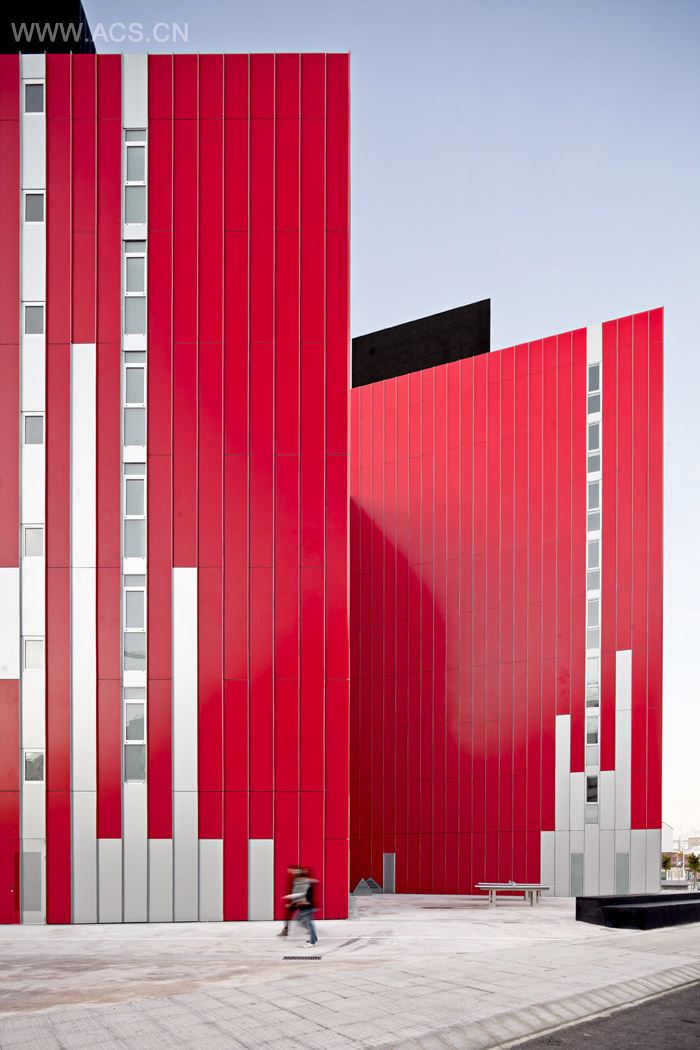 这个项目位于瓦伦西亚南部小镇甘迪亚,小镇拥有7.5万人口,这个项目作为学生宿舍以及社会住房两大功能的混合体。102个房间为年轻学生使用,40个房间是社会住房。