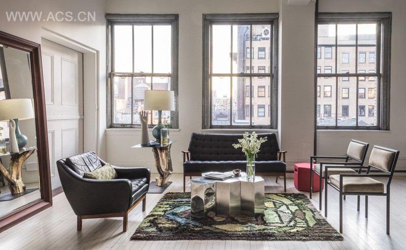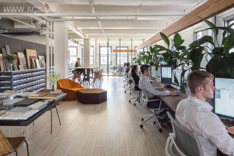 The space was peeled back to its essential architectural shell. Un-finished brick, the simple concrete structure, raw plaster, the maple floors were stripped, painted, buffed, and bleached to bring out their natural and honest beauty.