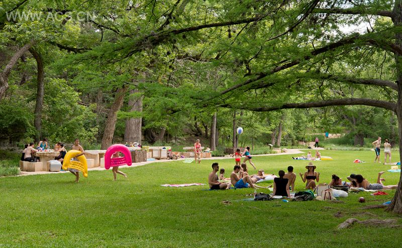 德克萨斯州郊野的蓝洞石灰石地质景观区一直是当地特色的旅游休闲景观。其中游泳“holes”景观区则是整个地质区最受欢迎的去处,景观设计师在这个项目中的任务是保护该地,对该区进行可持续的规划和设计。