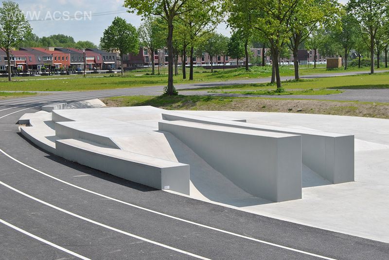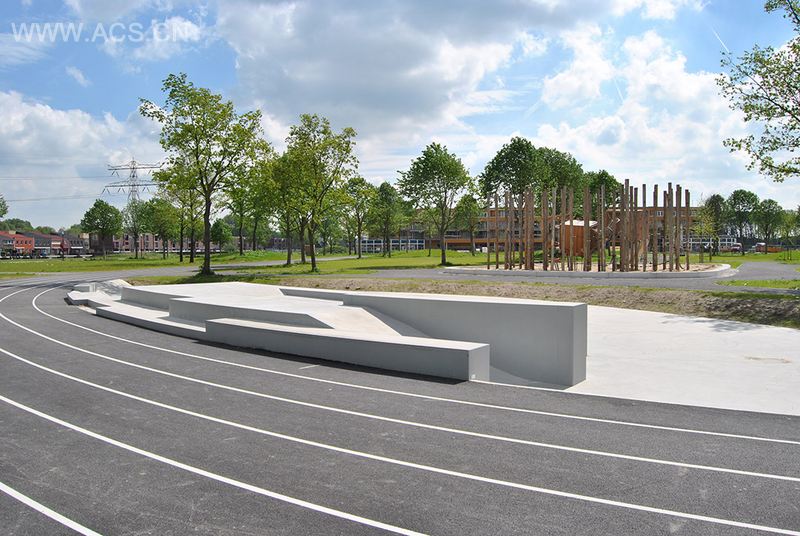 Dijk&Co景观事务所设计的西岛公园是一个社区公园,虽然建成不久,但其间的树木拥有不少年岁。匈牙利橡木与椴树星星点点布局在视野开阔的公园中。公园的主要功能是运动和娱乐。景观设计师在场地中塑造了雕塑般的滑板场地,成圈的跑道以及位于中心位置的儿童游乐场所。儿童游乐场所的概念是垂直森林,如同森林般的木柱上面串起几个立方体,封闭安全的引导圈道能保证儿童的安全,当儿童在其中爬上爬下,穿梭与立方体中时。他们的家长可以在一旁安心的等待。