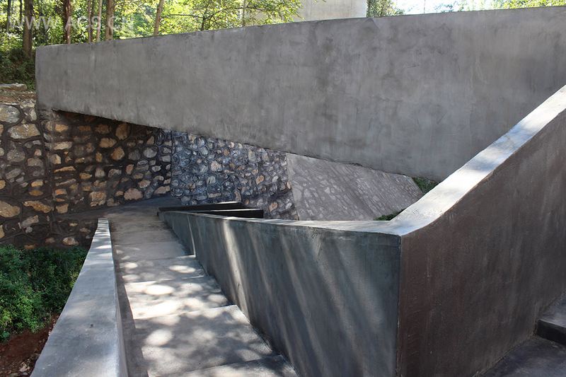 桥的设计主要是利用单环路衔接河堤的高差,并把河堤两岸连接。这样的设计一方面形成了宽阔、直接的行车通道供小型货车和摩托车来回两岸,另方面形成了一条人行道,让人们能够从桥下直达河边,方便钓鱼和日常的洗涤工作。荫蔽的台阶供村民坐下休憩。以前,河流把村民的聚落与农产品种植地分隔了。如今,村民在两岸间穿梭自如,并聚集在桥边做贸易生意,使桥成为村里的一个社交汇点。