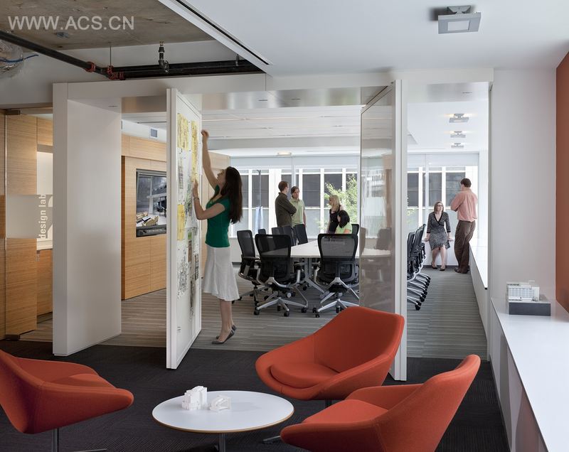 办公室是一家企业的文化载体。工作环境人类学家研究工作习惯,然而设计团队邀请所有员工进行在线调查,关注于小组讨论区和众多的会堂式会议。调查结果极大程度上帮助了设计团队的设计定位。一个开放式办公空间,覆盖广阔的WIFI,艺术品级的会议空间和独立办公室,这一切都打造出一个不同于传统阶级式的企业环境,充满了团队协作和互助氛围。办公室90%的区域能够直接获得自然光,少部分空间使用反射光。户外天台和游戏区及室内健身房强调了一种健康的生活-工作模式。