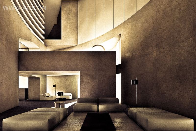 建筑师安东尼奥·卡迪罗在英国彭布罗克郡设计了一栋紫屋。这位建筑师的设计表达别具一格,如同手绘般的渲染生机勃勃的体现出光线的质量,变化,还有对空间的影响。同色调的色彩让人专注在空间中。凝重而富有冲击力的图纸准确的表达出建筑师想表达的对诺曼建筑风格的传承,探索多样化,以及对欧洲片区中遗失的交流的追溯。