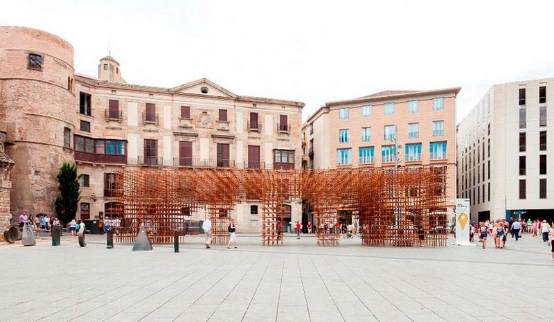 Benedetta Tagliabue (EMBT)与Fundació Enric Miralles设计团队围绕着巴塞罗那的BCN re.set活动建立了一系列的展馆。其中一个设计的主题为“Identity”,由来自中国的设计工作室“都市实践”设计建造。该建筑使用竹子搭建的古城墙重现出古罗马和加泰罗尼亚曾经的辉煌。设计中通过与拉萨尔建筑学院的合作,更加深入了解了当地的地理环境与人文风情,丰富了其项目内涵。