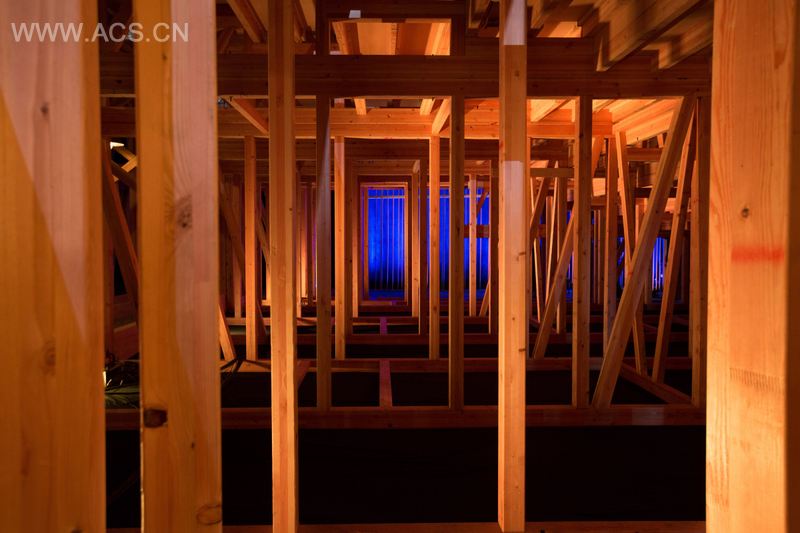 160箱木质部件来自于异地,人们用开车运到温哥华会议中心,并通过一个舞厅的大门搬运到现场。预先制作好的木盒子模块可以依次摆放,也可以堆叠起来做成不同的造型。