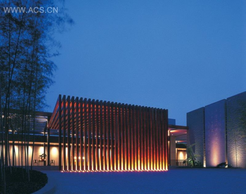 夕阳西下后,窗外的优美景色谢幕退场,换上主建筑体的魅人光影上场演出,夜晚的涵碧楼似乎比白天更迷人,由国际知名灯光设计师Nathan Thompson 操刀,这位擅长利用凝聚视觉、突显主题、投影效果的设计师,特别配合了Lalu 因玻璃门与木条隔间的透光设计,借力使力地一方面利用自然光源强弱变化,一方面搭配特殊设计的灯光效果,让饭店依不同时间、场景,出现7 种不同的光影变化,且所有光线都采间接反射光源,投影至林间、水面、廊道,甚至门号刷卡处都能发现极具美感的光之演出。