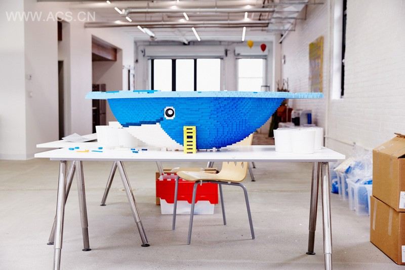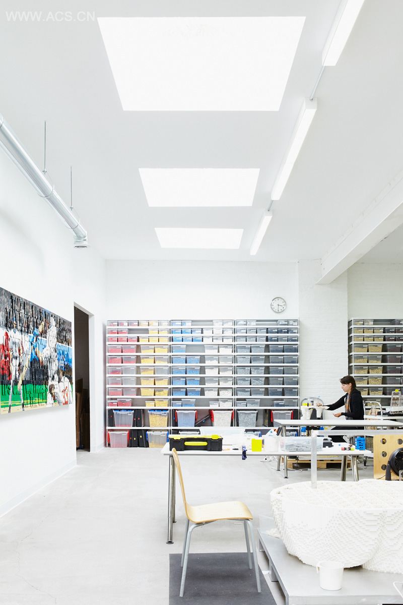 Sean Kenney, a “professional kid” who uses LEGO pieces to design and create sculptures, has moved into a newly renovated art studio in Brooklyn. studioMET Architects have taken what was originally an old parking garage, and have transformed it into a bright white 4,000 square foot art studio.