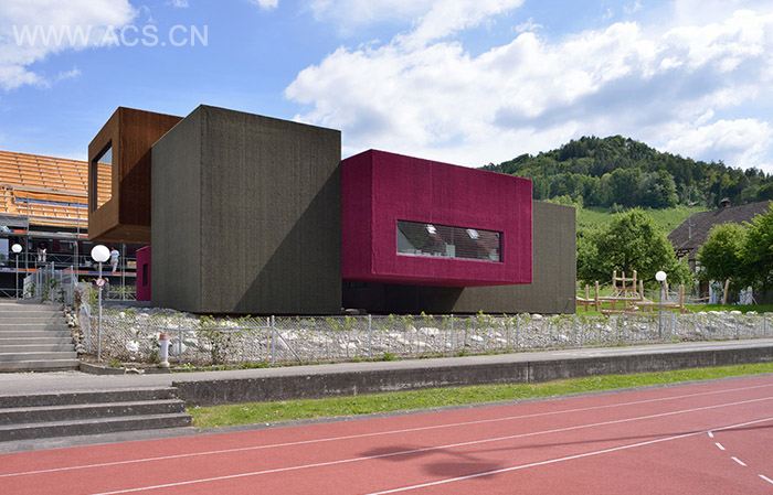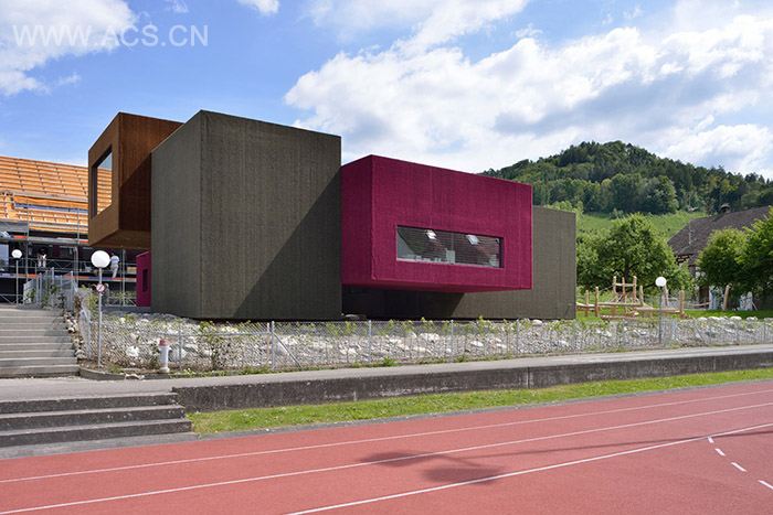 该项目是由L3P设计的幼儿园。该幼儿园位于瑞士Weiach地区一所小学的北面,其设计充分考虑功能因素和成本因素,采用预制木结构制成。