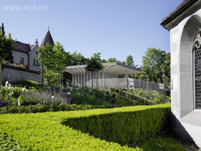 该项目位于Zug州Zugerberg和Kirchenstrasse之间的区域,区域内有St. Oswalds教堂和市图书馆及州图书馆。业主和区域所有者希望将该区域改造成为公共城市花园。这个城市花园应连接至旧城区的人行道路网,同时将图书馆主楼和阅读室连接在一起。设计面临的主要挑战是斜坡区域旁边有一个70年代建立的大型半隐藏公共停车场。停车场车道与项目用地相交。