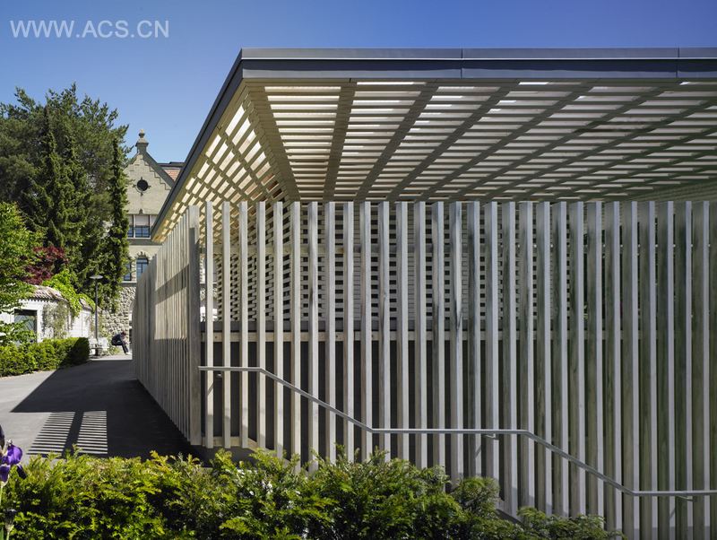 间巧妙地植入木结构装置,地形边缘的布局令人惊喜而折服,新项目为市民提供了一个新的休憩场所。”建筑师并未将大型地下停车场隐藏起来,而