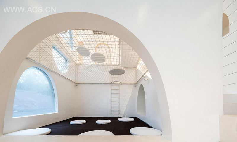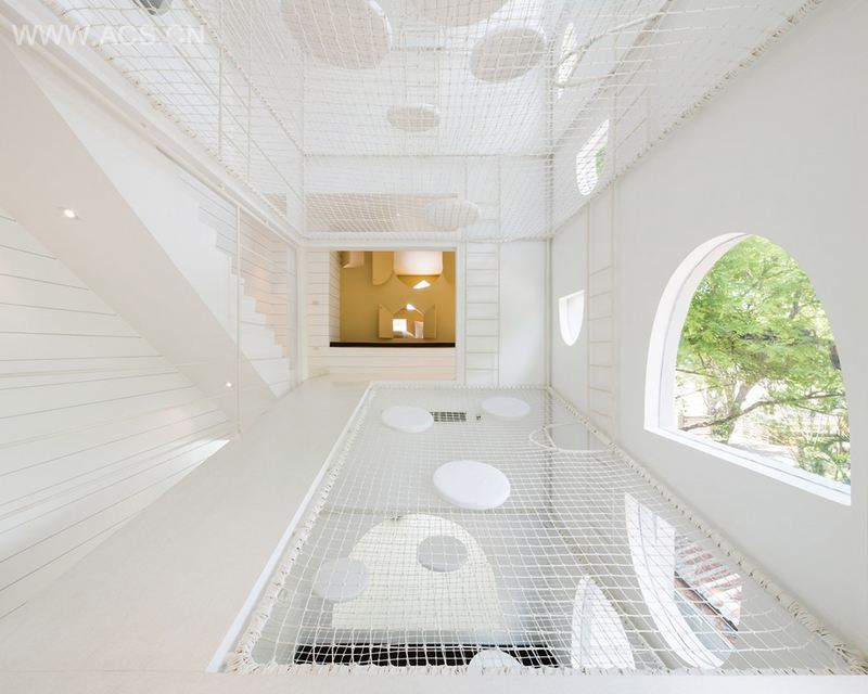 跑、爬、藏、悬挂、甚至下落等身体活动在日常生活中并不常见。Onion将1940年上映的美国动画片“猫和老鼠”作为该项目室内设计的参照标杆。如果Jerry为自己修建房子的话,很有可能会是一个巨大的奶酪房,里面设有帮助自己躲避Tom追赶的“莫比乌斯圈”逃跑路线。建筑师将该住宅设计成一个深受孩子们喜爱的乐园,让全家在七岩海滩的假期更有意义。