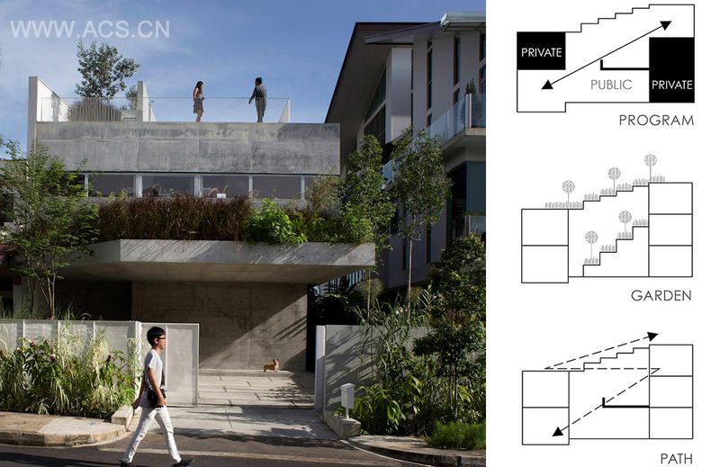该项目是位于新加坡的半独立式住宅重建项目,由Formwerkz Architects设计。业主是一个多代同堂的大家庭,在这条街道上已经居住了40年。他们目睹了高耸豪宅慢慢占据社区的发展过程。这些住宅往往追求面积扩大化。而业主家庭则打破这一趋势,希望重建一所能够满足未来日益扩大的家族的居住需求,同时由于旁边是一座大型住宅,因此还希望住宅能够具备很好的隐私性。