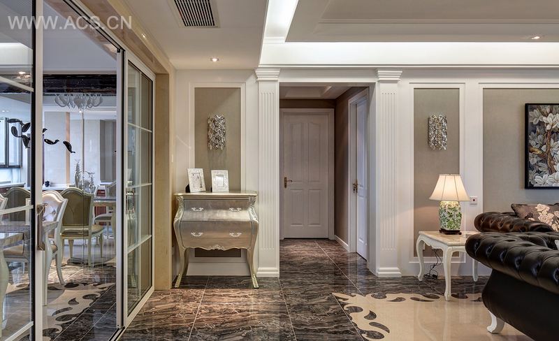 本案走优雅风格路线,在设计的各个环节都体现出人性化的设计。优雅的新古典风格,表现出轻松的质感;线条柔美的皮质家具,使整个空间显得简洁不失时尚;黑色沙发更使得整个空间彰显内敛复古;主卧的白色大床,高雅大方,不失浪漫梦幻;次卧摆放着休闲风的东南亚家具,倾诉点点滴滴的自然主义情结。本案让生活慢下来,回归自然与优雅。